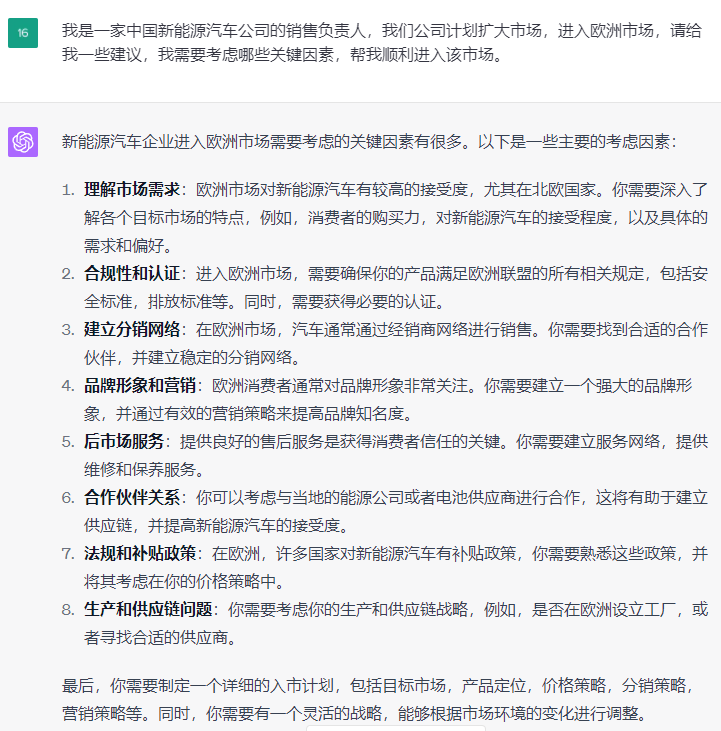 今天包括ChatGPT在内的AI工具,已经完全进入了我们的工作。![]() 如果你是一名公司的经营者,面对复杂的商业环境以及新的领域,为了实现公司的目标,你需要做很多的规划和决策。 “ChatGPT做商业决策 ” ![]() 它立刻给了答案,它建议我要考虑市场、法规、营销策略、品牌定位、生成供应链和文化等因素。这些方面,都要进行深入研究和做计划。 “ChatGPT做数据分析 ” 最终的决定,应该基于人类的判断。 【文章来源】云华商业频道 ;特别声明:以上内容(如有图片或视频亦包括在内)来自网络,已备注来源;本平台仅提供信息和存储服务。 Notice: The content above (including the pictures and videos if any) is uploaded and posted by user ASKAI, which is a social media platform focused on technology of CHATGPT and only provides information storage services. |