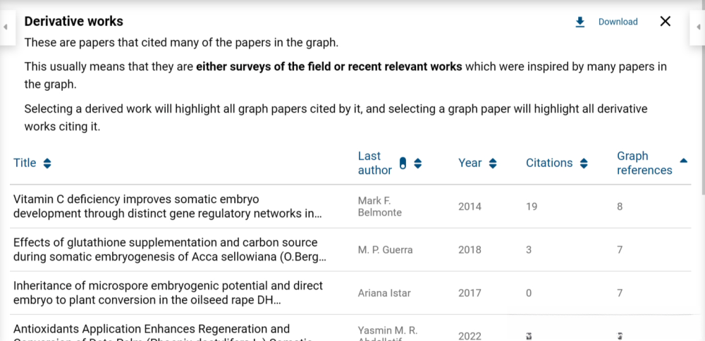 ![]() 选中一个圆点(文献),右侧面板就会显示这篇文献的基本信息,如下图所示。也可以通过点击选择左侧面板的论文列表,选择文献,中间可视图和右侧面板都会做出交互。 ![]() 点击右侧面板的论文标题,我们就可以跳转到这篇论文的官方网页,如下图所示。 ![]() Prior works 点击Connected Papers的【Prior works】,会进入Prior works页面,如下图所示。 ![]() 图表中罗列出来许多最常引用的论文。 这通常意味着它们是该领域的重要开创性论文,认真阅读这些论文可能是非常不错的方法。 点击【download】,我们可以下载这些文献的BibTex。将其导入Zotero,即可完成文献管理了,如下图所示。 ![]() Derivative works 点击Connected Papers的【Derivative works】,会进入Derivative works页面,如下图所示。 ![]() 图表中罗列出来许多衍生论文。这通常意味着它们要么是该领域的调研论文,要么是受图表中许多论文启发的最近的相关论文。 同样,点击【download】,我们可以下载这些文献的BibTex。将其导入Zotero,即可完成文献管理了。 体验点评