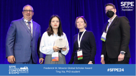 2024年10月6日-8日,国际消防工程师学会年会(SFPE 2024 Annual Conference & Expo)在美国路易维尔市举行。我校火灾科学国家重点实验室(以下简称“火灾实验室”)博士生夏婷荣获Frederick W. Mowrer Global Scholar奖。